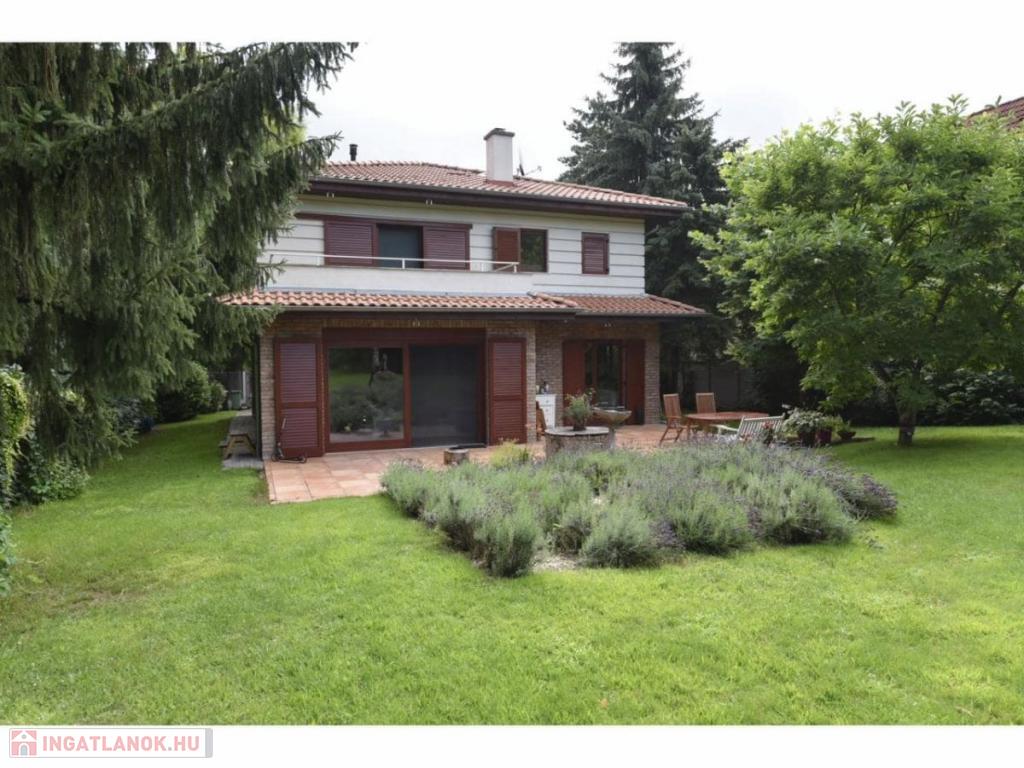 A telken fedett autóbeálló (2 autónak) és egy kerti kisház (10 nm) is található.