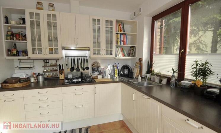 Világos, tágas terek, minőségi nyílászárók, hangulatos zsalugáterek, nívós, gépesített konyha, ízléses burkolatok jellemzik az ingatlant.