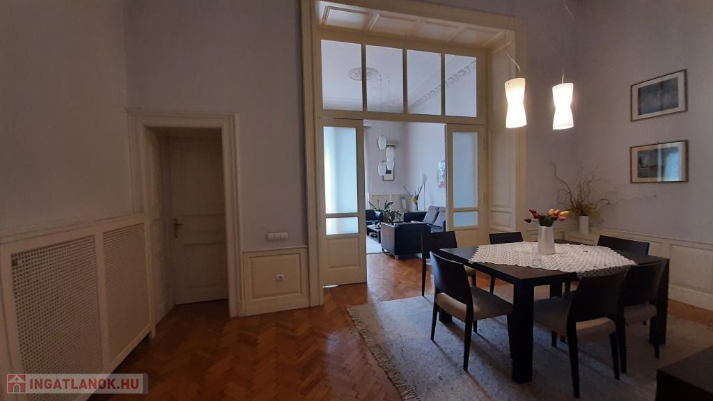 Szívesen ajánlom figyelmébe ezt a különleges Dunára és a Gellért-hegyre panorámás lakást a Belgrád rakparton. Az I. emeleti, 165 nm-es ingatlan 5 nm erkélyével ideális választás lehet családoknak, akár 2-3 gyermekkel is, főleg, ha szereti a nagy tereket, és kellemesen érzi magát a 4,3 m belmagasságú térben. A lakás három tágas, 2 utcai és 1 udvari szobával rendelkezik, valamint egy külön étkezőhelyiséggel, ami extra kényelmet nyújt a mindennapokra. Cirkó fűtése mellett a hűtő-fűtő klíma is segíti az éppen aktuális hónapban a hőmérséklet ideálissá tételét. Az ingatlan közös költsége: 35.000.- Ft havonta. Fűtés átalányban 50.000.- Ft, villanyra 10-12.000.- Ft körül kell költeni, és a vízszámla sem több havi 8-10 ezer Forintnál.