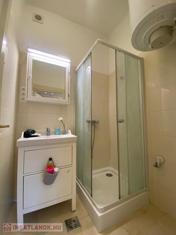 Fürdője zuhanyzós, a meleg víz szolgáltatást villanybojler biztosítja, jelenleg nincs mosógép, de a Bérbeadó megoldja, ha szükséges.