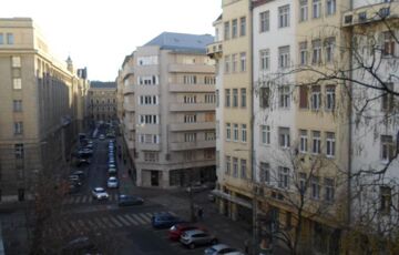 Kiadó Budapest V.ker. Szalay utcában, rendezett liftes ház 4.emeletén egy 92 nm-es, 3 szobás, panorámás, erkélyes (6 nm-es), légkondicionált, riasztós, bútorozott, gépesített, SZÁMLAKÉPES lakás.
