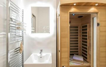 Az infra szaunában a stressztől megszabadulhat, az erkélyről a Parlamentben gyönyörködhet.